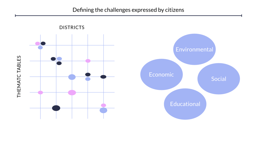 In the months leading up to the final workshops, the project team carried out activities to listen and collect proposals and challenges, categorized into thematic tables by neighborhood. Based on the data and the candidate's political line, these proposals were prioritised and four specific focus areas were identified: environmental, educational, economic and social.